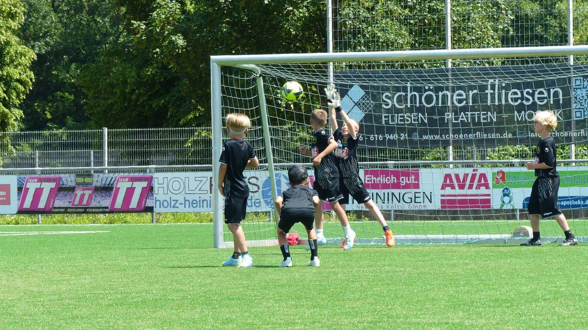 Auf dem Platz wurde dann richtig aufgedreht: Mit viel Einsatz, Fairness und Freude zeigten die Kinder, was sie in den letzten Tagen gelernt hatten. Besonders schön: Wer gerade nicht spielte, feuerte die anderen Teams lautstark an, ein echtes Camp-Feeling eben. Zwischen den Spielen konnten sich die Kinder im Schatten ausruhen, frisches Obst naschen und einfach mal durchschnaufen.